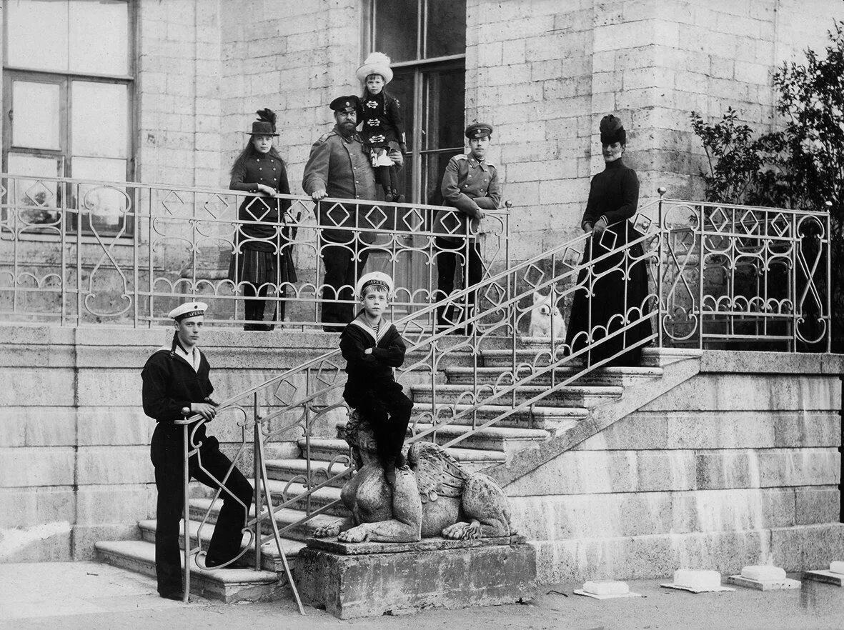 Император Александр III с семьей — Мария Федоровна, в.к. Ксения, в.к. Ольга, цесаревич Николай, в.к. Георгий, в.к. Михаил. Гатчинский дворец